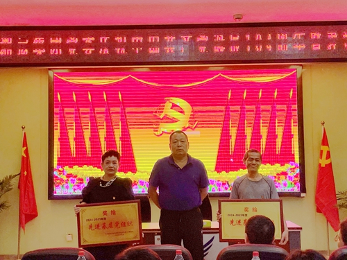 董事長郭躍明出席會議并為先進基層黨組織頒獎。