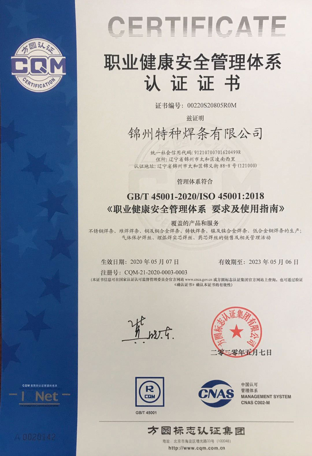 認(rèn)證類別:GB/T 45001-2020/ISO 45001:2018 《職業(yè)健康安全管理體系 要求及使用指南》